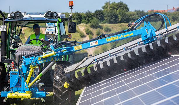 In order to guarantee maximum performance and, with that, the highest possible yield, your photovoltaic system requires maintenance. Solar systems are often worth several hundred thousand euros – which is why you should ensure the regular cleaning of your photovoltaic system as part of a long-term investment. Cleaning not only significantly extends the service life of your system, it also leads to an increase in performance. With innovative technology and expertise from SunBrush® mobil, your photovoltaic systems are cleaned professionally and with care. Due to the extensive range of accessories available, the machine technology can be optimally adapted to different PV systems and locations. As a leading manufacturer, we have innovative and patented accessories at our disposal that guarantee the thorough and efficient cleaning of solar systems.